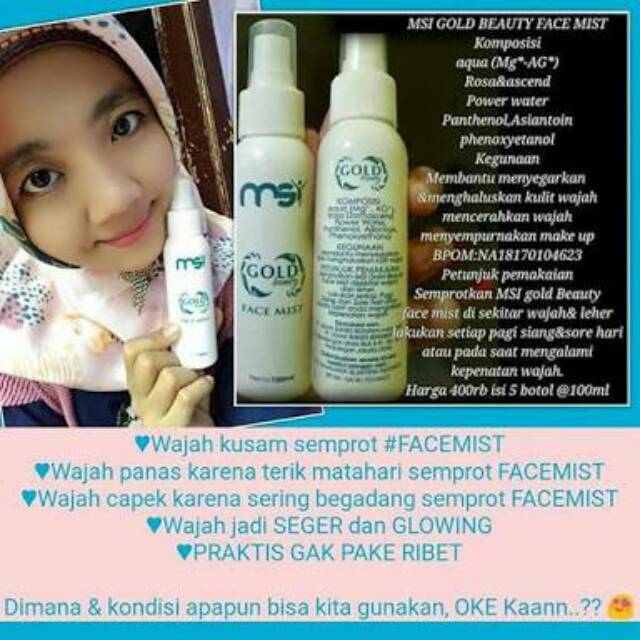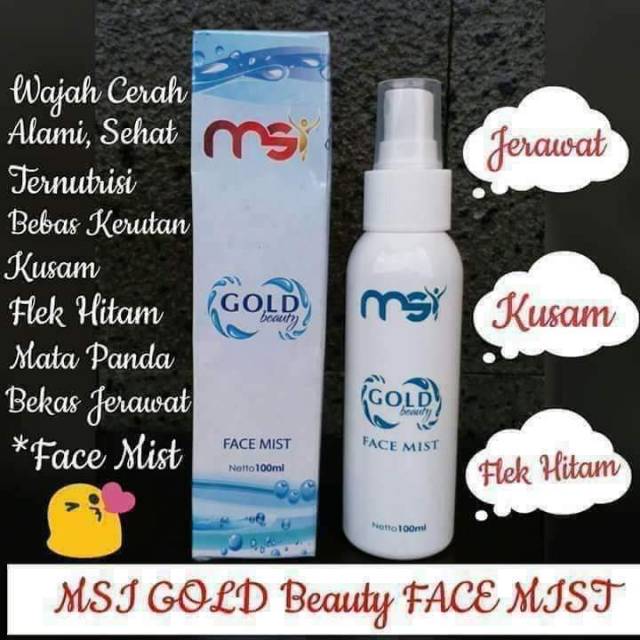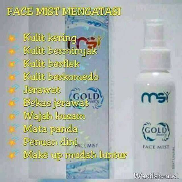 Msi gold beauty face mist. Deyto hair scalp harga rp 425 ribu isi 9 item bpom na18181000427 bpom na18181000727 bpom na18181000428 info selengkapnya berhubungan dengan msi deyto hair scalp. Segera dapatkan msi gold beauty face mist spray. Digunakan untuk alas make up karena produk ini mampu membuat makeup tahan lebih lama.